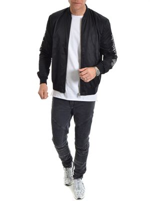 Tunn, ofodrad svart bomber från nANA jUDY. Med broderad text på ärmarna, " Ignorance is bliss".